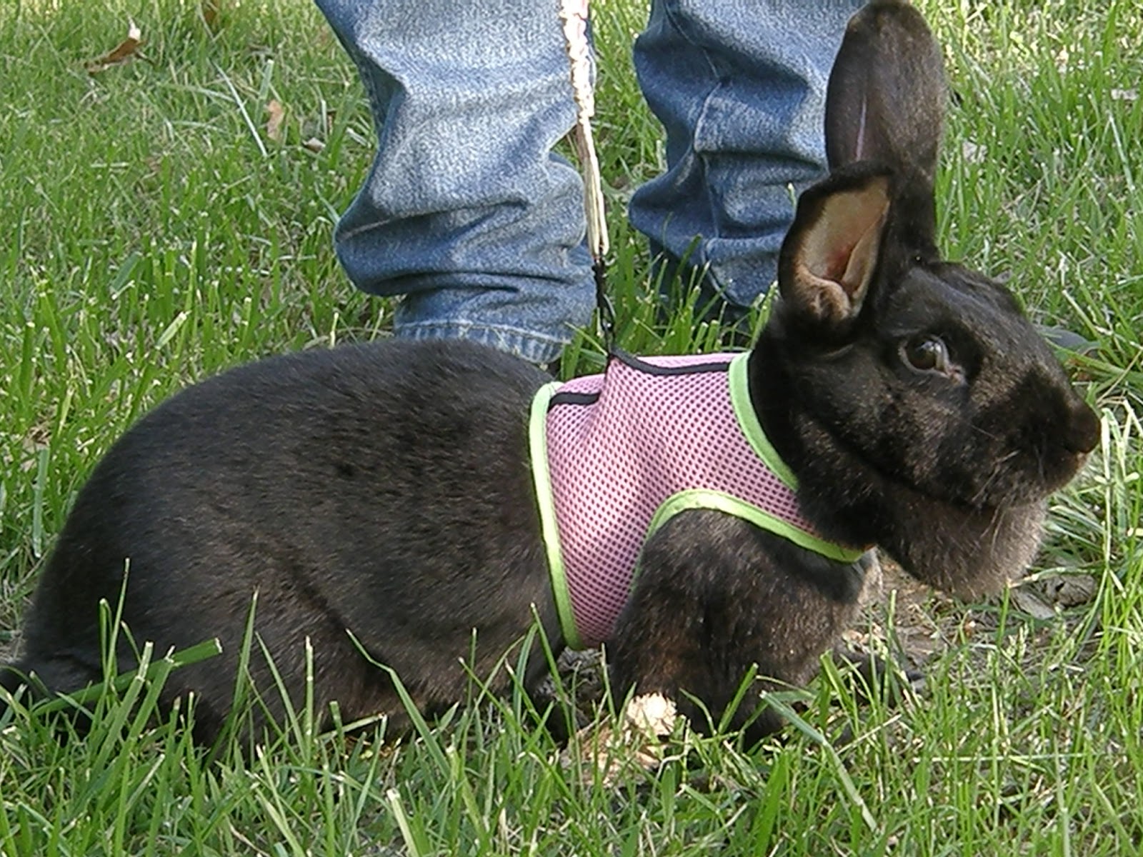 She's a little over a year and a half old now, in the puberty portion of her expected 10 year lifetime. Does she act up like a normal teenager? You bet. But I still love this crazy black bunny, and all her silly antics. Besides, since we raised her, she has excellent harness and outdoor manners, and tolerates being picked up pretty well. And does she love a good snuggle on the bed with us? You betcha!